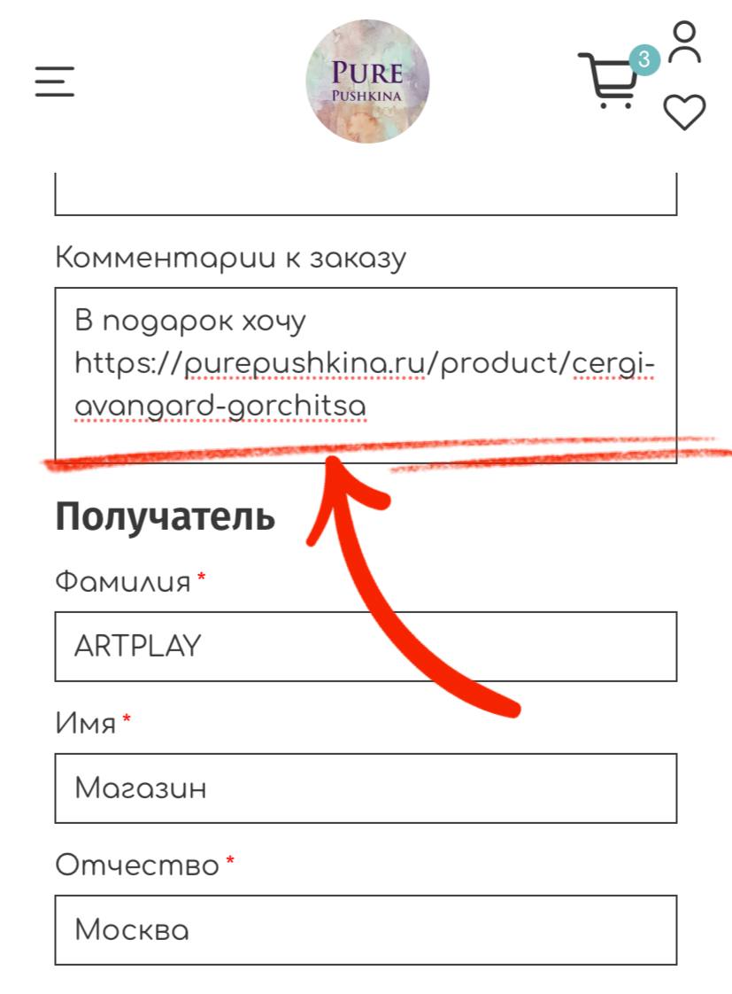 Когда вы нажмете "оформить заказ" из корзины, у вас откроются обязательные поля для заполнения данных. И сразу после поля с адресом доставки будет поле "комментарии к заказу". Впишите туда название желаемого украшения в подарок или вставьте ссылку.