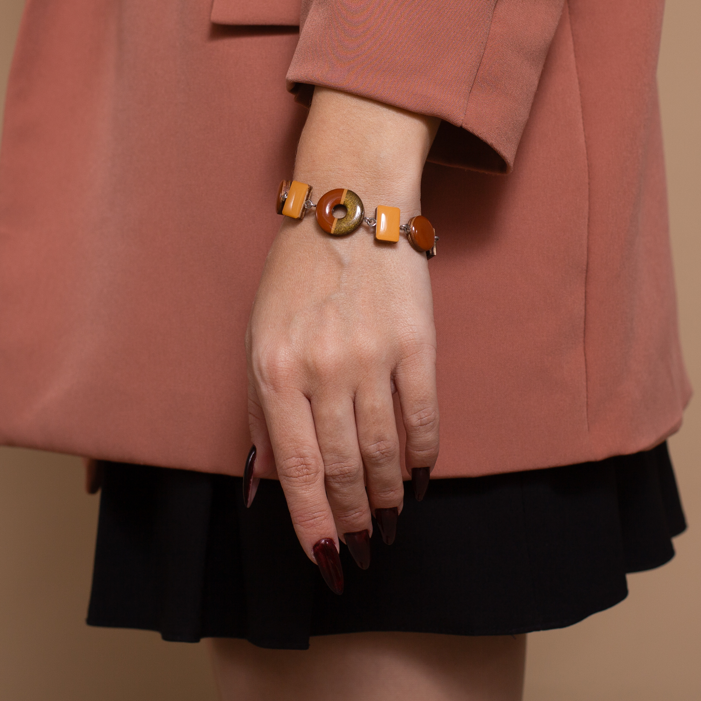 Двусторонний детальный браслет. Одна сторона в цвете коллекции Жёлудь, другая в цвете металлика - Хаки. Благородный, изящный аксессуар, подходящий как для повседневной носки, так и для торжественных мероприятий.