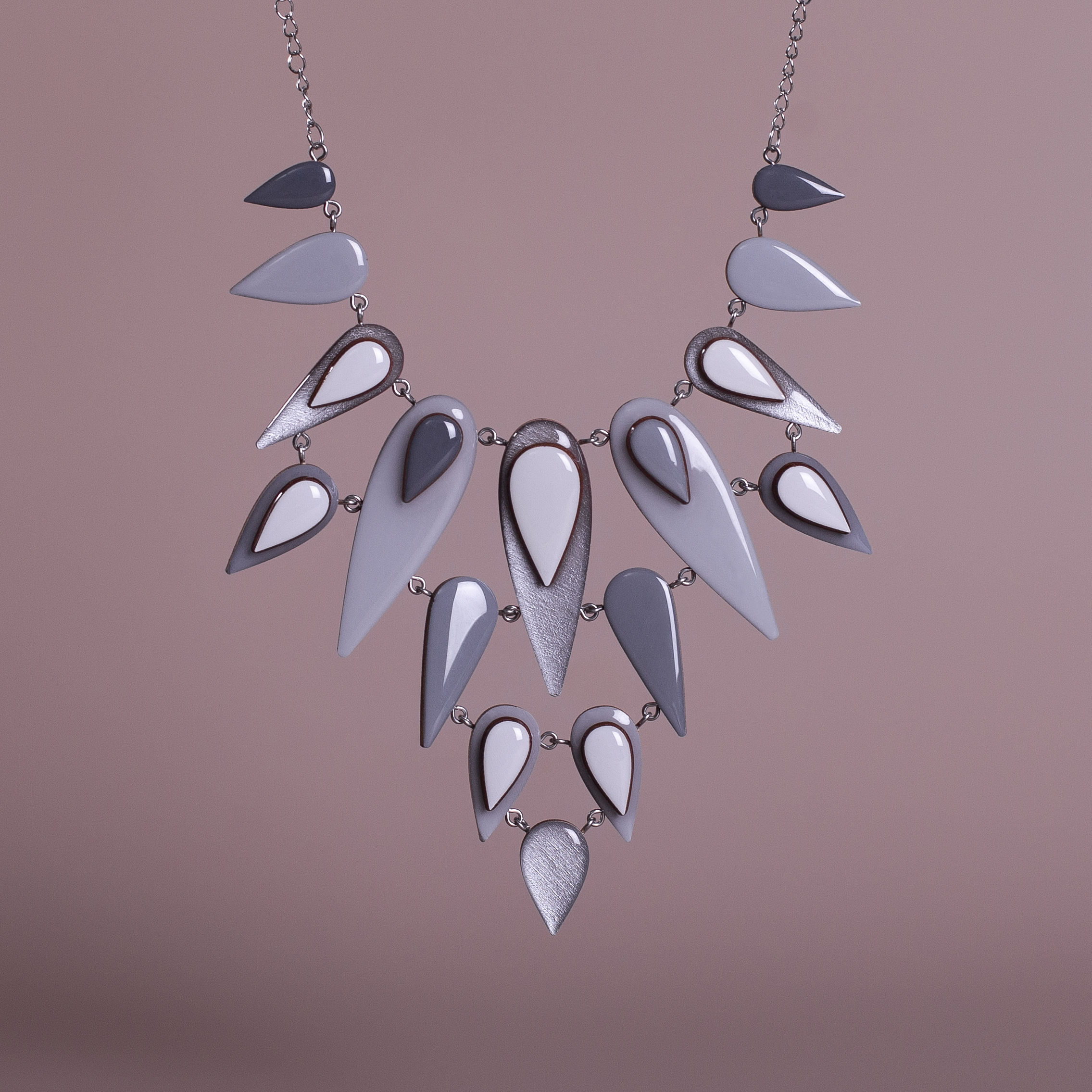 Двустороннее объёмное колье в росписи коллекции Монохром. Данное колье, как и все крупные колье, в нашей мастерской выполняются по запросу. Уже сейчас вы можете оформить заказ, и мы отдадим его в производство! В компаньоны к этому колье подойдут серьги из коллекций Монохром!
