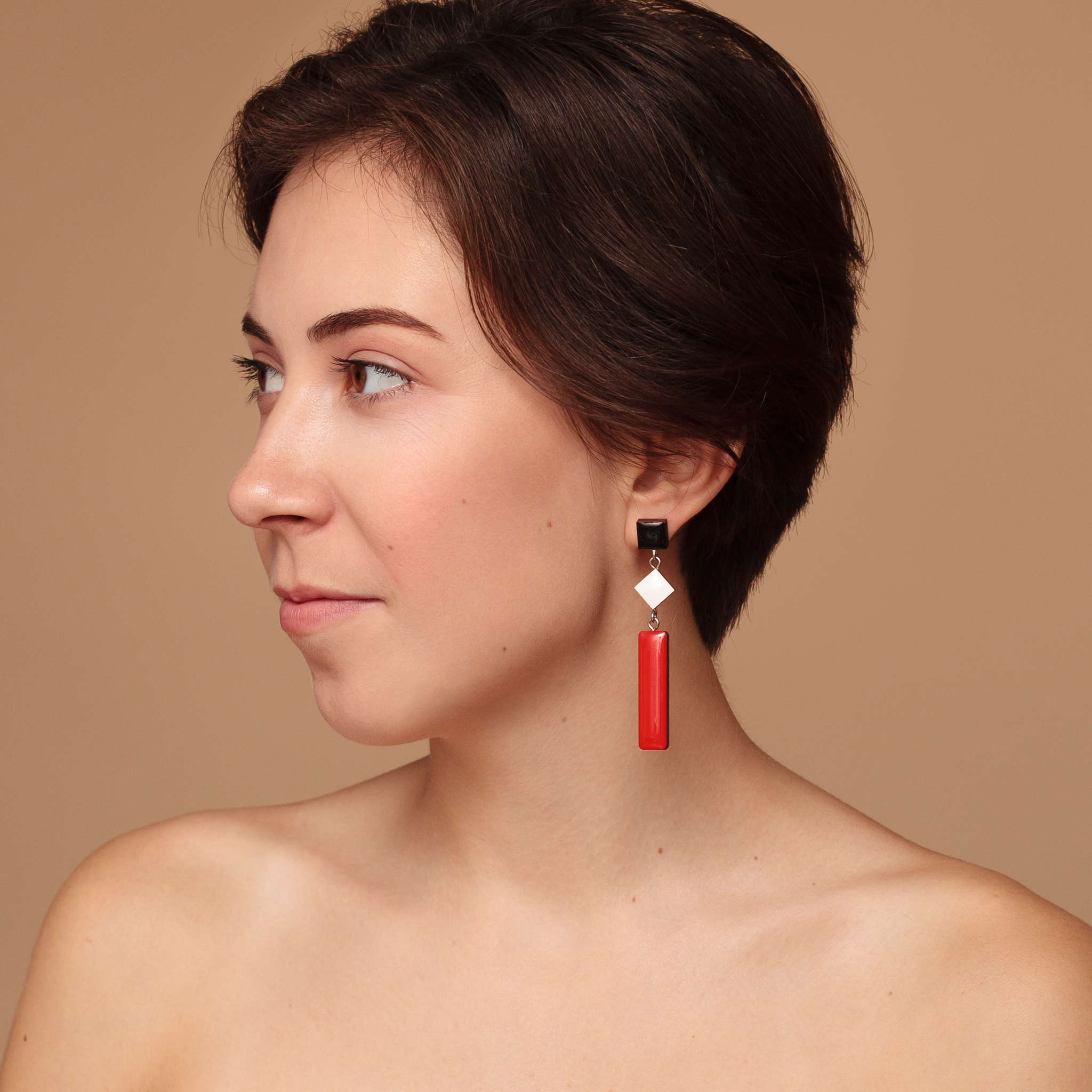 Серьги-палочки на квадратном основании-пусете. Идеальны, если Вам необходимо визуально удлинить лицо.